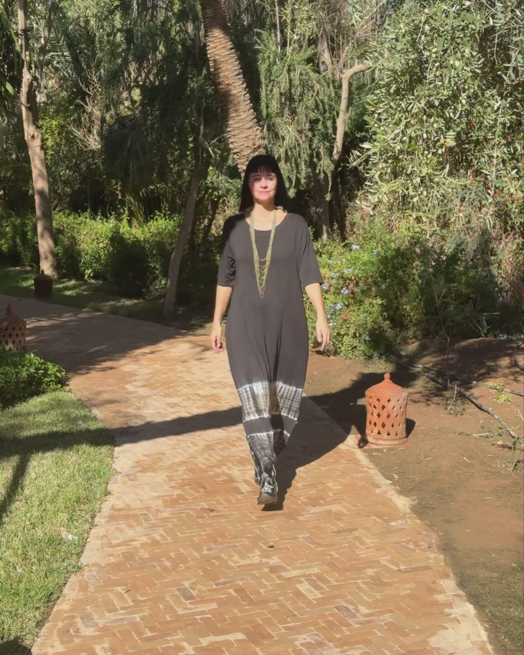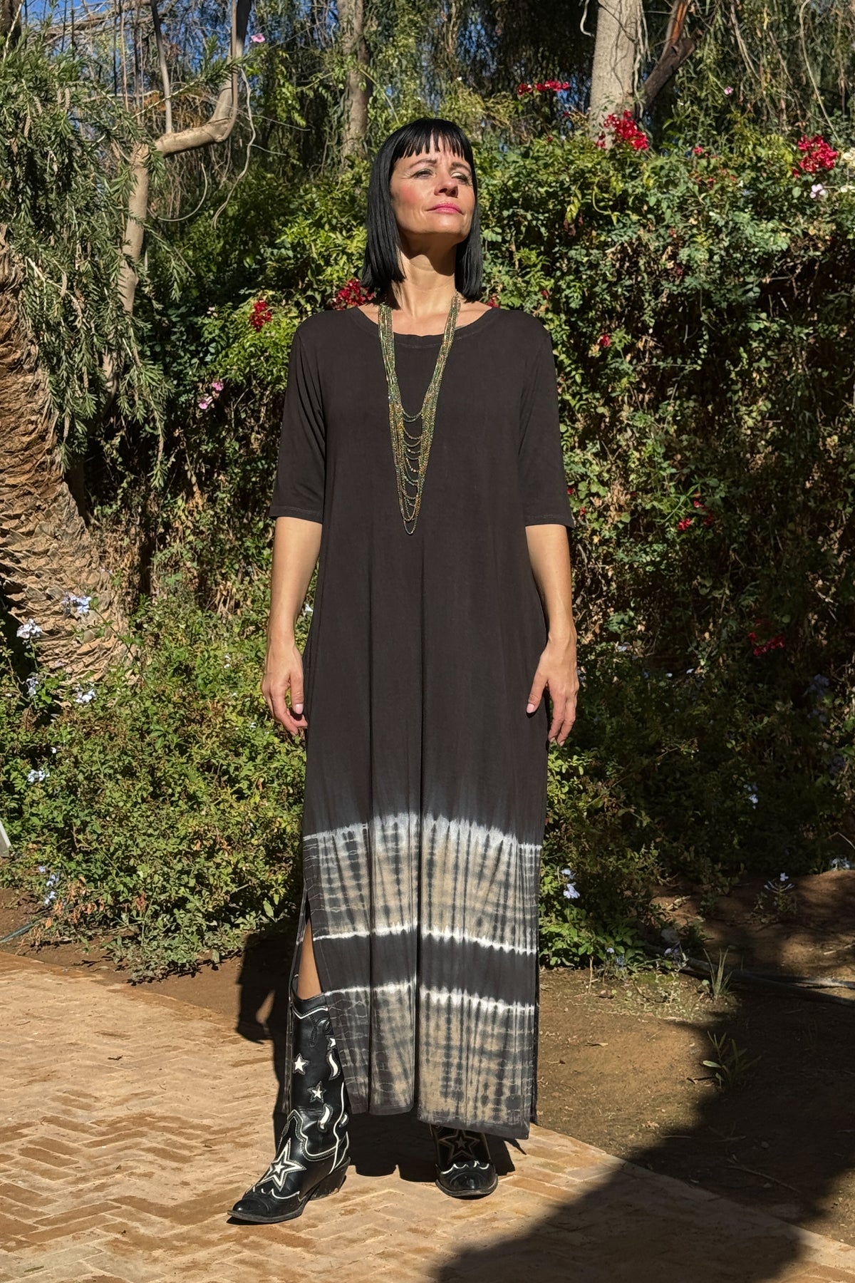 Malika Tie-Dye kjolen fra Gabifit er lavet i blød viskose, der falder let og behageligt. Den afslappede pasform og de 3/4-lange ærmer giver et stilrent og roligt udtryk, der klæder de fleste.