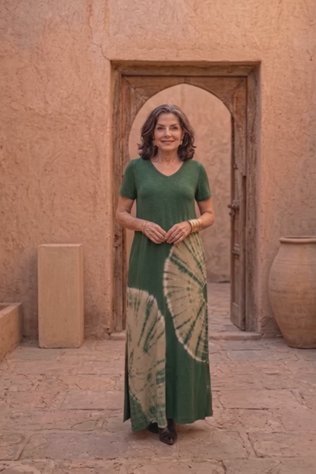 Our Eden long-sleeved tie-dye dress from Bella Rosa is made from a soft viscose fabric that falls flatteringly around the body. The dress has a loose-fitting design and a unique tie-dye pattern. With an elegant v-neck and side pockets, this dress is perfect for everyday wear and parties.